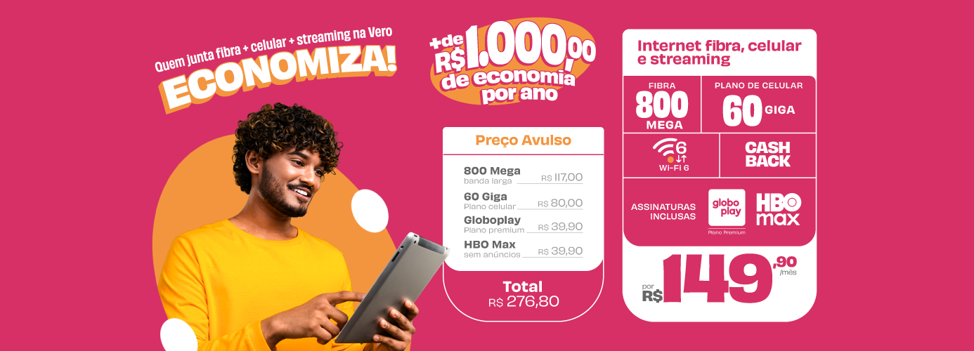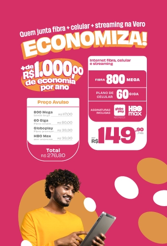 Os planos da Vero incluem uma variedade de benefícios já inclusos no pacote de internet. Entre eles, você encontra serviços de streaming como Globoplay, Telecine, Vero Vídeo, HBO Max, Disney+, Paramount+, Vero Vídeo e Premiere, além de canais ao vivo disponíveis também. Educação também tem por aqui, como por exemplo Kiddle Pass, Pequenos Leitores, e o Estuda+, com esses serviços crianças e adultos desenvolvem suas habilidades com objetivos específicos.