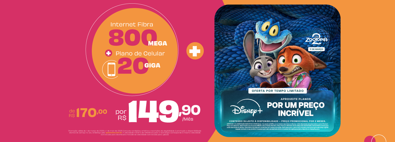 Oferecemos planos de internet que vão de 320 Mega até 850 Mega, todos com serviços digitais inclusos. Consulte os planos disponíveis na sua cidade e aproveite nossas ofertas especiais!